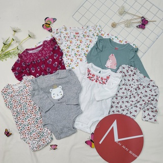 (3-6M chọn màu- Gái) Body chip TAY DÀI xuất dư cổ tròn, cổ đáp vai cho bé gái- Bộ liền thân, BODYSUIT cho bé