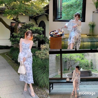 Sét đầm váy nữ dự tiệc 2 dây sẻ chân váy họa tiết màu trắng kèm áo khoắc tôn dáng trẻ trung thanh lịch siêu xinh