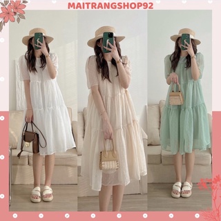 Váy đầm babydoll voan tơ chấm bi 2 lớp tay ngắn phong cách tiểu thư ulzzang (TTA123)