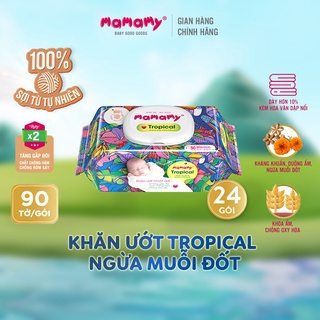 Combo 24 Khăn giấy ướt 100% sợi tự nhiên và rayon Mamamy Tropical Tinh dầu cúc vạn thọ/Không mùi 90 tờ