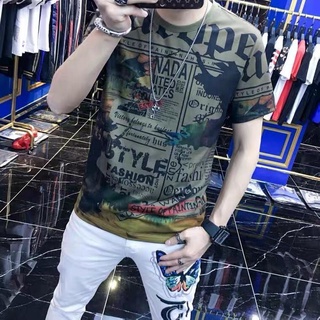 Áo thun tay ngắn lửng dáng ôm in hình thời trang mùa hè châu Âu thịnh hành cho nam