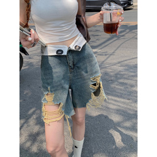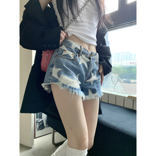 Quần Short Jean Ống Rộng Rách Tua Rua Ngôi Sao Thời Trang Mùa Hè Phong Cách retro Mới Cho Nữ