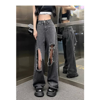 「MANSA」Quần Jean Dài Lưng Cao Dáng Rộng Thiết Kế Rách Thời Trang Mùa Hè Mới Cho Nữ