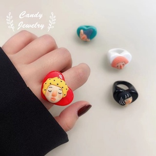 Nhẫn nhựa resin MANYUE hình búp bê trái tim phong cách Hàn Quốc dễ thương sáng tạo