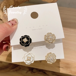 Đôi khuyên tai hình hoa đính kim cương ngọc trai giả thanh lịch cho nữ