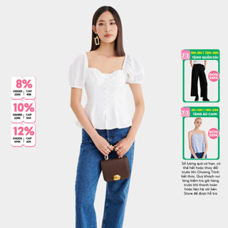 Áo kiểu MARC FASHION cổ vuông tay phồng đính nút thân trước - FANH050223