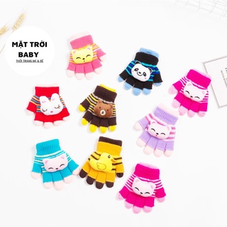 găng tay len 2 lớp đính gấu bông đáng yêu cho bé 1-3 tuổi