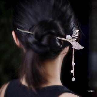 Pearls Hair Pin Sticks Handmand Retro Fishtail Hair Fork with Pearls Tassel for Women Girls Long Hair