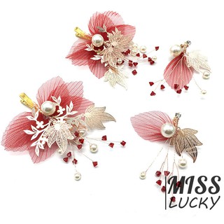 Kẹp Tóc Họa Tiết Hoa Màu Đỏ Tươi Mới Thời Trang Cho Cô Dâu
