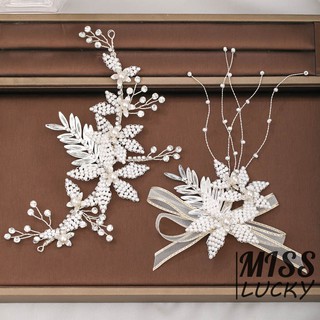 1 Bộ Kẹp Tóc Hình Hoa Lá Đính Đá & Ngọc Trai Giả Thanh Lịch Cho Cô Dâu