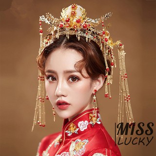 New Bride's Headwear Golden Costume Headdress Chinese Phoenix Coronet Hair Ornament Cheongsam Dress Tiara