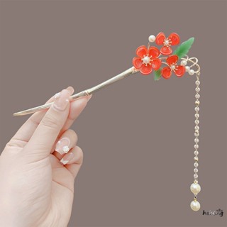 Trâm Cài Tóc Dài Thẳng Họa Tiết Hoa Mận Đỏ Thời Trang Cho Nữ