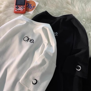 Áo thun tay lỡ nam nữ One, áo phông unisex form rộng dáng xuông basic hình thêu – Maylinh shop