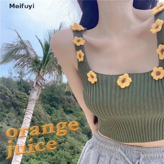 [Meifuyi] Áo Croptop Dệt Kim Sát Nách Cổ Tròn Phối Ren Gợi Cảm Mùa Hè Cho Nữ