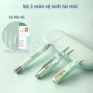 Bộ lấy ráy tai vệ sinh mũi có đèn cao cấp, bộ 3 dụng cụ vệ sinh tai mũi có thể sạc lại - BCC