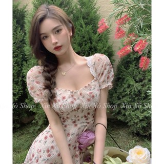 Váy hoa nhí viền ren hở lưng có đệm ngực 2 lớp Đầm nữ dáng ngắn xuân hè 2023