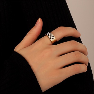 Nhẫn họa tiết ca rô màu trắng đen phong cách thời trang