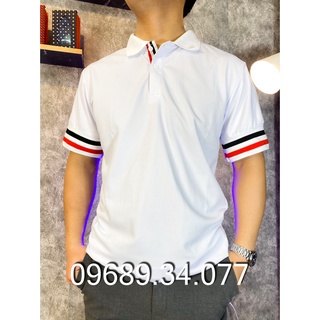 Áo phông nam nữ thome kết hợp đường viền cánh tay, áo polo đôi đen trắng cực đẹp