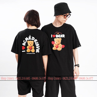 Áo phông đôi unisex form rộng hoạ tiết Gau ADLV, áo thun cặp đen trắng cổ tròn