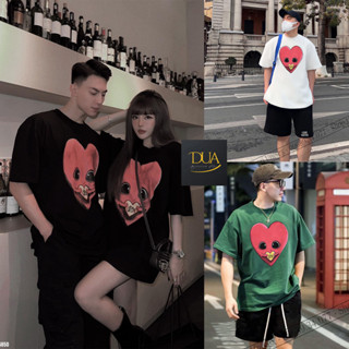 Áo phông đôi nam nữ in hình tráim tim DREW form unisex chất liệu cotton