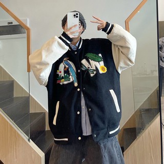 Áo Khoác Bóng Chày Vải Nhung Dáng Rộng Thêu Họa Tiết Kiểu Hàn Quốc Cá Tính Cho Nam