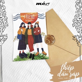 THIỆP dấu sáp hàng thiết kế FRIEND kèm phong thư Kraft kiểu Vintage làm quà tặng, thư mời bạn bè
