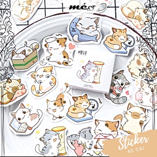STICKER Mèo híp đáng yêu hộp 45 miếng dán trang trí sổ tay, lịch, ốp lưng điện thoại, laptop - S18