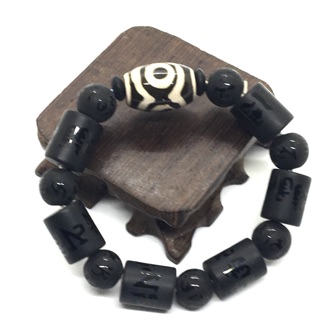 Vòng tay Dzi và đá đen phong thủy khắc chữ Tây Tạng
