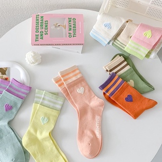 [HÀNG CÓ SẴN] TCC3 - Tất vớ cao cổ hoạ tiết kẻ ngang tim thêu phong cách Hàn Quốc