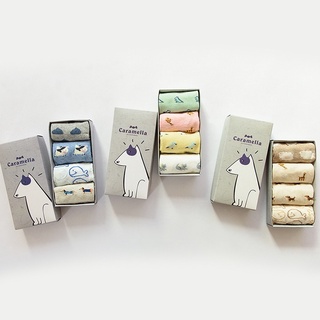 Set 4 đôi tất nữ cún Caramella tặng kèm hộp hoặc túi zip xinh phong cách Hàn Quốc