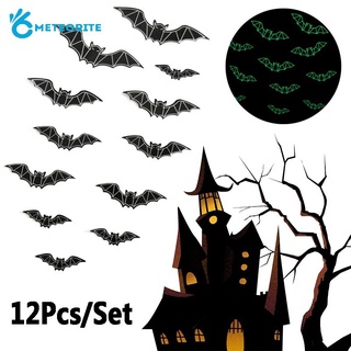Set 12 Sticker Dán Tường Hình Dơi Đen Phát Quang Trang Trí Halloween