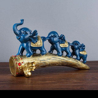 Tượng 3 chú Voi Xanh Dương decor trang trí phòng