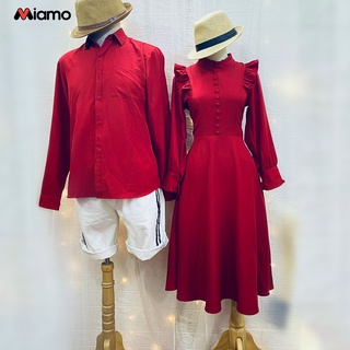 [Freeship] Set đồ đôi áo sơ mi nam - đầm nữ đỏ thiết kế váy xòe Miamo MO31