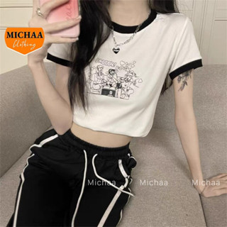 Áo Croptop HÌNH TIM VOP Cổ Tròn Tay Ngắn Ôm Body, Áo Thun Croptop Kiểu In Chất Borip - MICHAA CR116