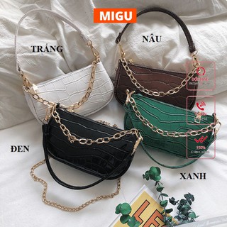 Túi nữ hàn quốc giá rẻ - Túi kẹp nách nữ da vân cá sấu dây xích MIGU.VN