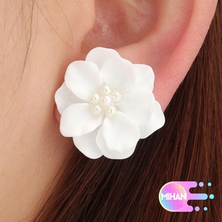 Bông tai hình hoa trà đính ngọc trai nhân tạo thời trang MIHAN1