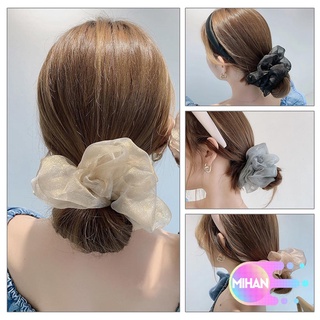 Dây Cột Tóc Co Giãn Phối Lưới Màu Trơn Cỡ Lớn Thời Trang Cho Nữ MIHAN1