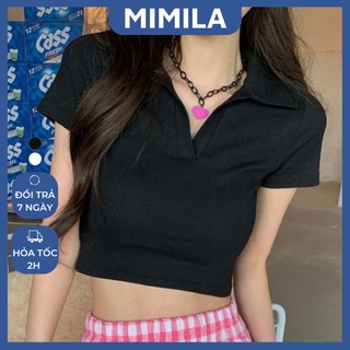 Áo Croptop Ngắn Tay Cổ Polo Siêu Xinh MIMILA Áo Croptop Cổ Bẻ Nữ Chất Thun Co Giãn Thoáng Mát - MA031