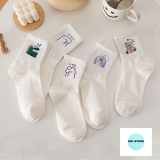 SET 5 ĐÔI Tất Vớ Nữ Cổ Cao Chất Liệu Cotton Họa Tiết Dễ Thương, Chất vải Đẹp, Thoáng khí