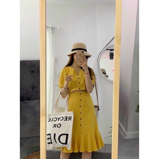 [ Miễn phí ship 2022 ] Set váy vàng nút tay búp, set chân váy đuôi cá cổ v , áo croptop trẻ trung, tiểu thư