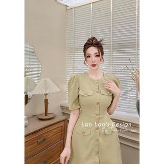 [10.10 Sales Freeship] Váy đầm nữ thiết kế đi tiệc, đầm tiểu thư tay phồng đính nút phối cổ ren dáng xòe sang chảnh dx