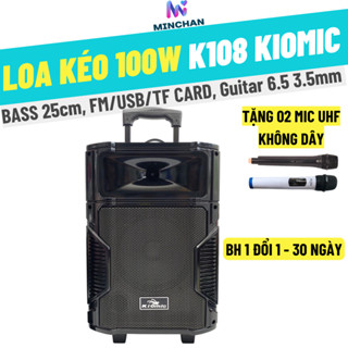 [Hoả Tốc]Loa Karaoke Bluetooth Di Động Vali Kéo Kiomic K108 Thùng Gỗ (Kèm 1-2 Micro Không Dây Hát Cực Hay)