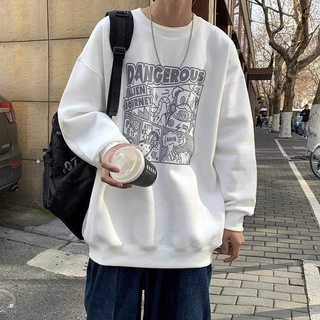 Áo thun sweater tay dài cổ tròn dáng rộng thời trang xuân thu mới cho nam 2021