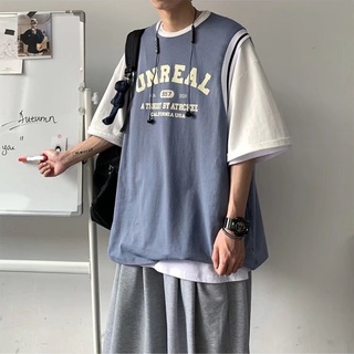 Áo Thun Tay Ngắn Cổ Tròn Dáng Rộng Giả Hai Lớp Thời Trang Cá Tính Cho Nam