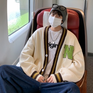 Áo khoác cardigan dệt kim tay dài dáng rộng phong cách thời trang đường phố xuân thu cho nam