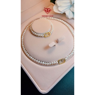 Bộ vòng cổ trai nuôi nước ngọt và vòng tay ngọc mix khóa Dio bạc mạ vàng hạt 6-7 ly-Minh Tâm Jewelry