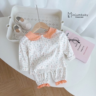 Bộ đồ dài tay quần dài thu đông cho bé gái cổ bèo chất liệu 100% cotton, set quần áo trẻ em miniumbabyfashion SB1302