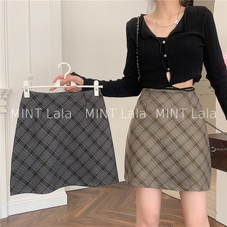 Chân Váy Kẻ Caro Chéo Có Quần Trong Cạp Cao Vải Dạ
