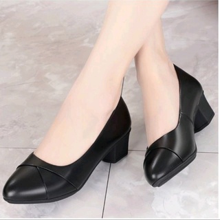 ( Mẫu mới) Giày cao gót trơn đế vuông - Giày cao gót công sở da sần mềm 5,7cm