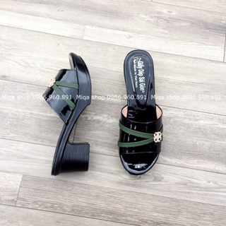 Dép nữ trung niên - Dép cao gót 5p cho mẹ da bóng quai chéo